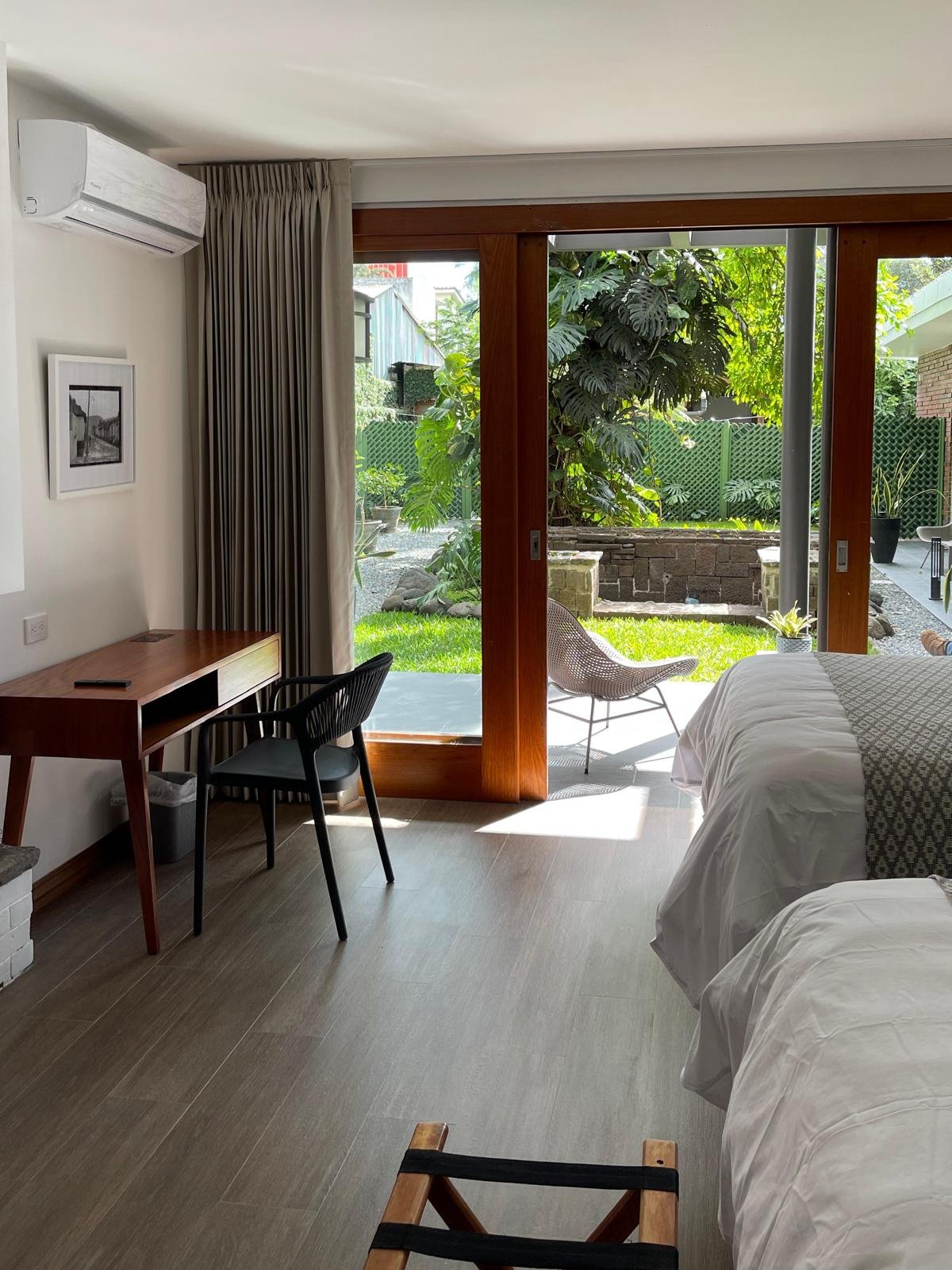 Amplias habitaciones con acceso directo a un jardín interior, diseñadas para ofrecer privacidad y confort, con terrazas que invitan al descanso.